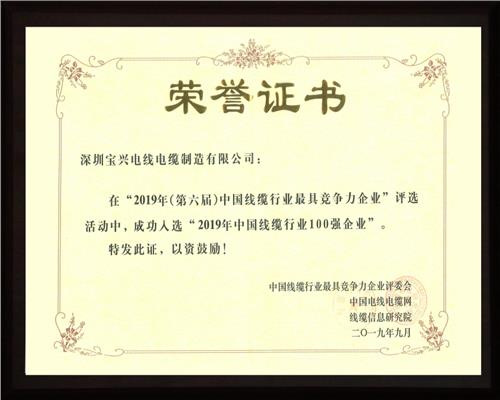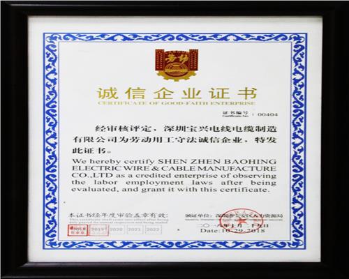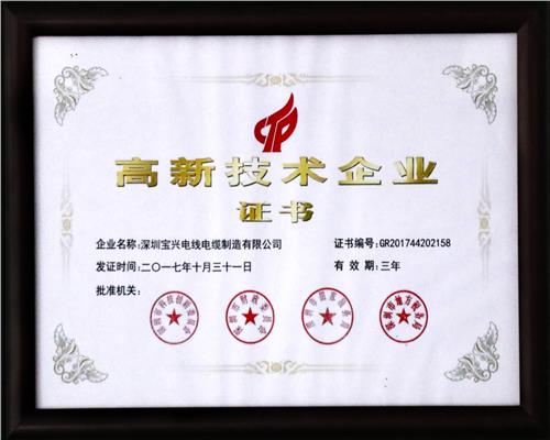 被海關授予“信得過企業(yè)”、被工商銀行分行授予“AAA”級信用企業(yè)、被中國企業(yè)登記年鑒委員會授予“明星企業(yè)”、被深圳市外商投資企業(yè)協(xié)會評為“全國外商投資雙優(yōu)企業(yè)”、被深圳市科技與信息局授予“深圳市高新技術企業(yè)”、被寶安區(qū)評為“文明企業(yè)”、“國家高新技術企業(yè)”、“深圳市質量強市骨干企業(yè)”、“廣東省著名商標”、廣東省電線電纜行業(yè)協(xié)會理事單位、太陽能、新能源和機器人協(xié)會會員、深圳市企業(yè)創(chuàng)新發(fā)展促進會副理事單位、深圳市航空航天產(chǎn)業(yè)協(xié)會、中國線纜百強企業(yè)、寶安區(qū)百強企業(yè)、寶安區(qū)誠信企業(yè)、廣東省智能傳導特種電線電纜工程技術研究中心、廣東線纜行業(yè)最具競爭力企業(yè)20強等